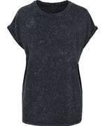 Damen Acid Wash Drop Shoulder T-Shirt | Schwarz
