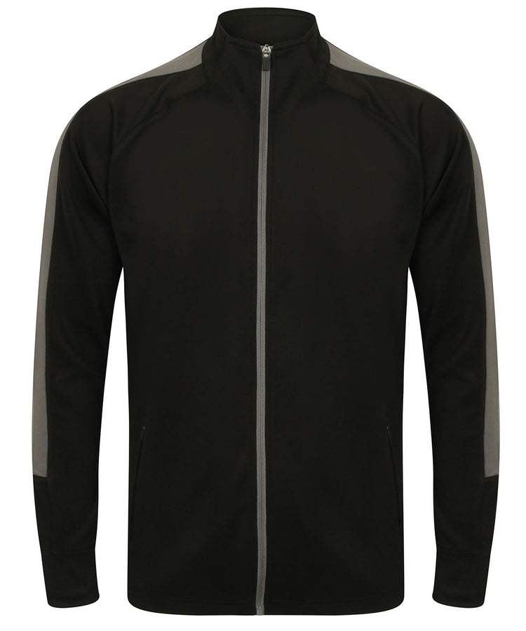 Eines der auffälligsten Merkmale dieses Kleidungsstücks ist seine Strickkonstruktion mit kontrastfarbigen Einsätzen an den Außenärmeln. Dieses Detail verleiht dem Kleidungsstück nicht nur einen Hauch von Stil, sondern erhöht auch die Haltbarkeit. Der kontrastfarbige Frontverschluss ist nicht nur ästhetisch ansprechend, sondern bietet auch praktische Funktionalität. Die Seitentaschen mit Reißverschluss bieten sicheren Stauraum für Ihre Sachen unterwegs.