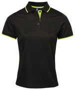 Coolchecker® Kontrast-Poloshirt für Damen | Schwarz/Limette