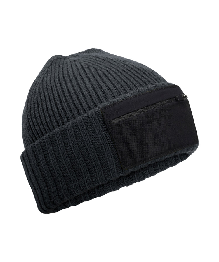 Beanie mit Reißverschluss-Patch | Graphitgrau/Schwarz