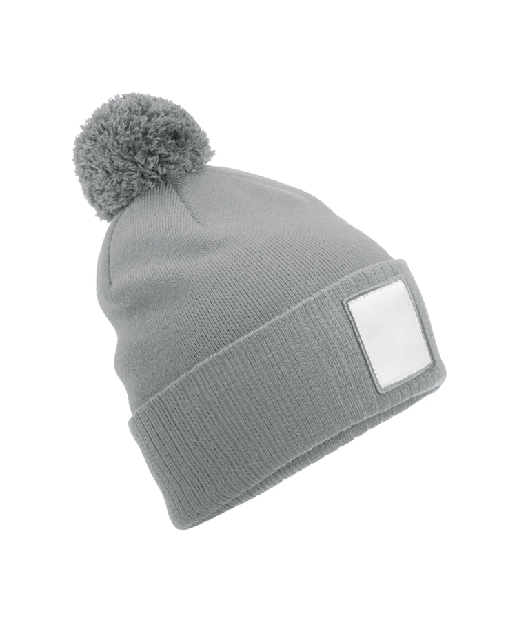 Beanie mit Patch-Applikation und Bommel | Grau/Weiß