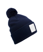 Beanie mit Patch-Applikation und Bommel | Helles Marineblau/Weiß