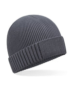 Designed Beanie mit Patch aus Bio-Baumwolle | Graphitgrau