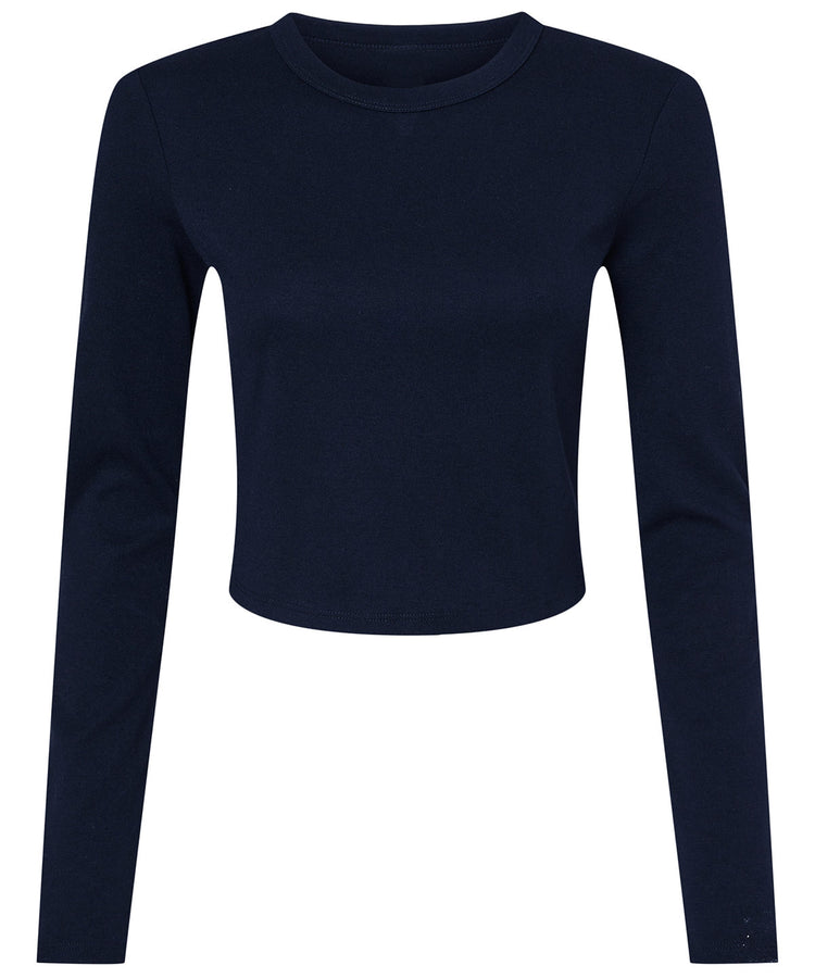 Damen Micro Rib Langarm Baby T-Shirt | Solid Navy