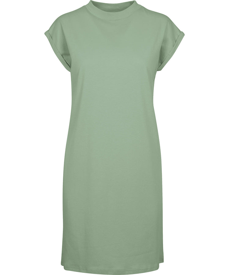 Entdecken Sie lässige Eleganz mit diesem schulterfreien Rollkragenkleid von teeuno. Das Kleid aus weichem Baumwollstoff ist die perfekte Kombination aus T-Shirt und Kleid. Die schulterfreie Silhouette sorgt für eine weiche, schmeichelhafte Form, während der Mini-Stehkragen und die hochgekrempelten Ärmel Ihrem Look einen Hauch von Stil verleihen.