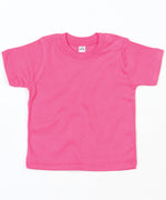 • Kurzarm-Baby-T-Shirt aus reiner Baumwolle mit Rundhalsausschnitt aus weichem, bequemem und dehnbarem Stoff mit Druckknöpfen an der Schulter.