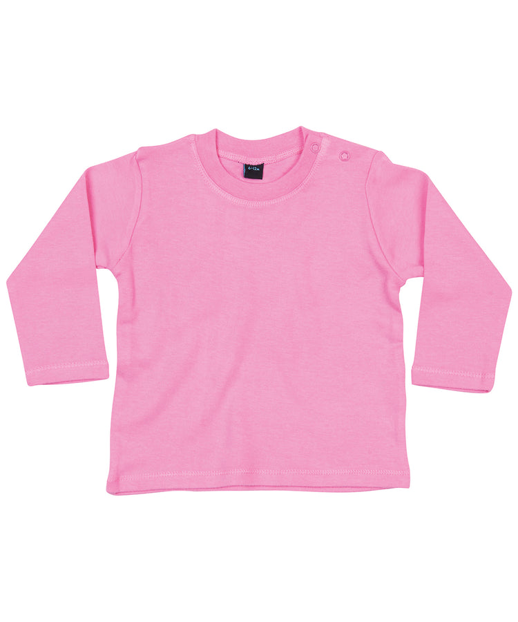 • Langärmliges Baby-T-Shirt aus 100 % weicher, dehnbarer Baumwolle mit Druckknöpfen an der Schulter für einfaches Anziehen.