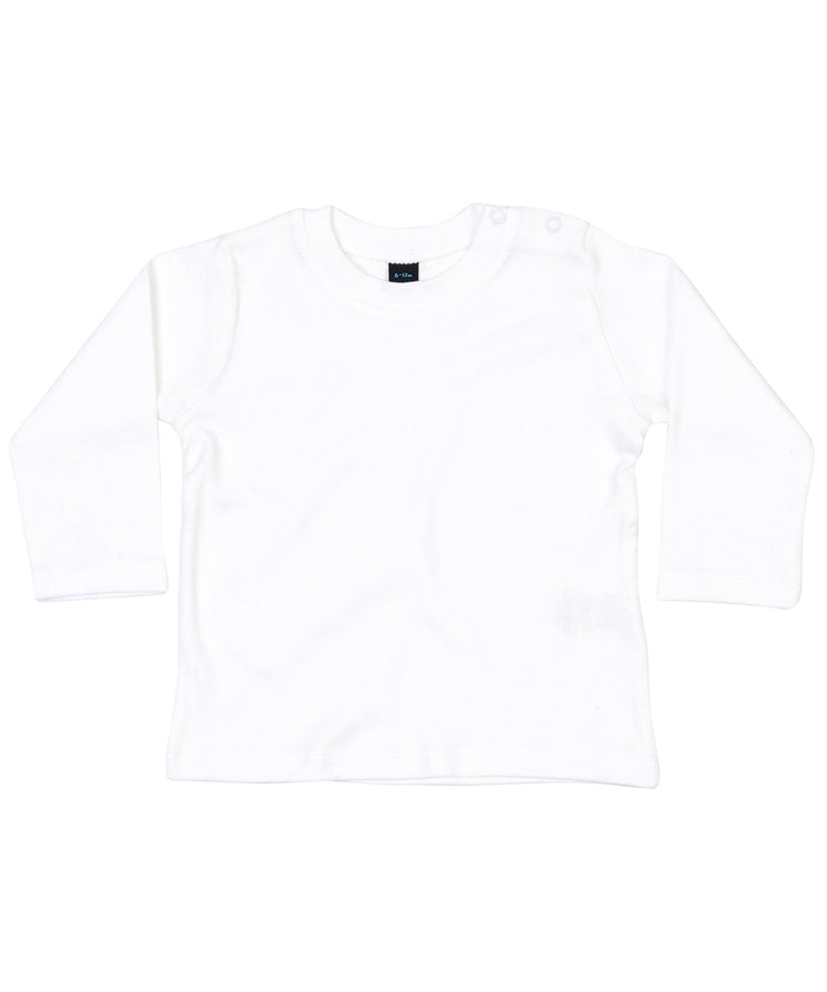 • Langärmliges Baby-T-Shirt aus 100 % weicher, dehnbarer Baumwolle mit Druckknöpfen an der Schulter für einfaches Anziehen.