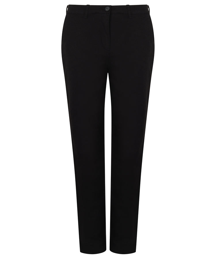 Damen-Stretch-Chinos. Schmal geschnittene Chinohose mit leichtem Stretchanteil für Komfort und Bewegungsfreiheit. Mit YKK-Frontreißverschluss, Gürtelschlaufen, seitlichen Eingrifftaschen, zwei Gesäßtaschen, Abnähern für extra Passform und passenden Knöpfen. BSCI-zertifiziert. Diese schmal geschnittene Chinohose aus Baumwollmischung ist der perfekte moderne Style für alle Branchen.