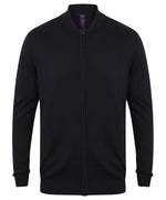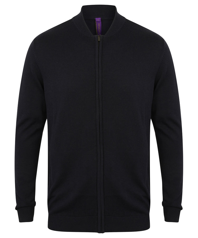 Diese Unisex-Bomberjacke aus Feinstrick (12 Gauge) ist ein modernes Modell, das einem traditionellen Klassiker eine zeitgenössische Note verleiht. Mit halbgerollten Ärmeln, durchgehendem Metallreißverschluss und Aufreißlasche, 1x1-Kragen, Saum und Bündchen, Leistentaschen vorne und einem Henbury-Logo. Zertifiziert von SEDEX, Öko-Tex und BSCI.