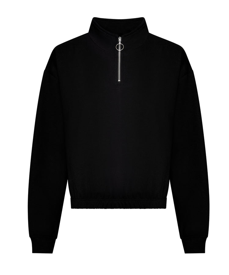 Kurzes Sweatshirt mit Reißverschluss für Damen | Tiefschwarz