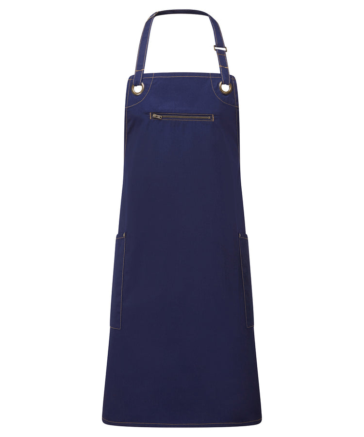 Barley Latzschürze mit Kontrastnähten | Marineblau/Kamel