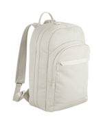 Der Rucksack verfügt über ein Hauptfach mit Reißverschluss und einer breiten Öffnung für einfachen Zugriff. Im Inneren befindet sich ein gepolstertes Fach für ein Tablet oder einen Laptop bis 13 Zoll, eine Netztasche mit Reißverschluss und zwei Netztaschen innen. Eine Flaschenschlaufe und ein hochwertiges Innenfutter runden das Angebot ab. Außen befinden sich eine Fronttasche mit Reißverschluss und Regenklappe sowie Innentaschen. Der Rucksack verfügt außerdem über einen Gepäckgurt mit einer diskreten Reißverschlusstasche und einem Tragegriff.