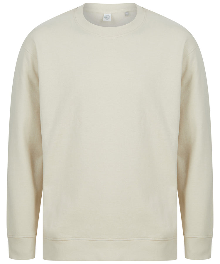 Wir präsentieren ein Kleidungsstück, das nachhaltige Unisex-Mode neu definiert: ein lässiges und bequemes Sweatshirt von teeuno. Dieses Sweatshirt mit lockerer Passform verfügt über eingesetzte Ärmel, überschnittene Schultern und einen verlängerten Saum hinten, was ihm einen modernen, schnittigen Look verleiht. Der gerippte Rundhalsausschnitt und die Bündchen, das Nackenband und die glatte Strickauflage verleihen dem Kleidungsstück ein klares und edles Finish. Die farblich abgestimmten Steppnähte verleihen dem Sweatshirt einen dezenten Touch.