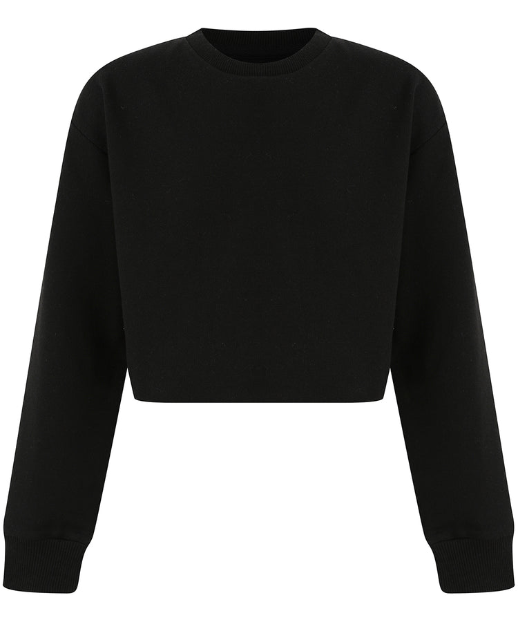 Das Besondere an diesem Sweatshirt ist sein kurzer, offener Saum. Dieses einzigartige Detail verleiht dem Design eine moderne, jugendliche Note und hebt es von allen anderen Sweatshirts ab. Das schlicht gestrickte Nackenband sorgt für Strapazierfähigkeit und Strapazierfähigkeit.