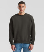 Hochwertiges Sweatshirt mit Raglanärmeln und Single-Jersey-Nackenband (70/30). Kragen, Bund und Ärmelbündchen aus Baumwoll-Elasthan-Ripp. WRAP-zertifiziert. Die Vorderseite aus 100 % Baumwolle garantiert perfekte Druck- und Stickergebnisse und die große Farbauswahl machen das Fruit Premium Sweatshirt zu einem vielseitigen Begleiter.