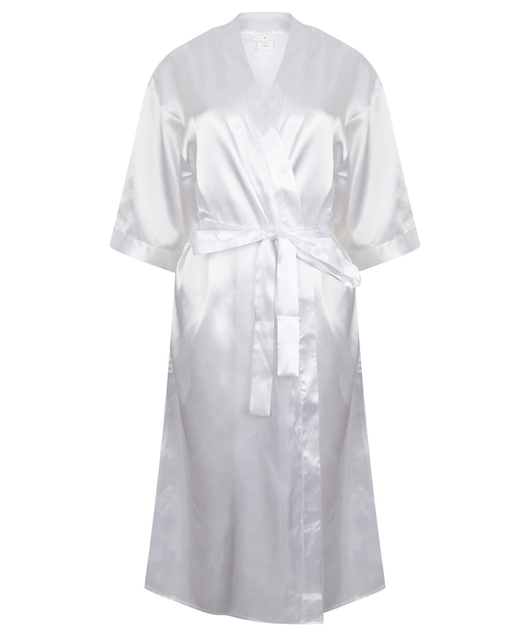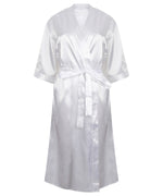 Mit seinem Kimono-Design, 3/4-Ärmeln und einer Länge, die knapp unter das Knie fällt, eignet sich dieser Bademantel perfekt zum Entspannen zu Hause oder zum Fertigmachen für einen besonderen Anlass. Er verfügt außerdem über praktische Seitentaschen und einen integrierten Stoffgürtel für eine bequeme, individuelle Passform.