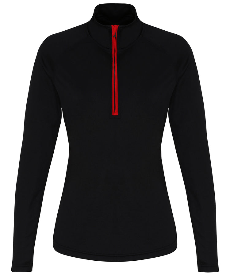 TriDri® Full-Zip Performance Langarm-T-Shirt für Damen | Schwarz/Rot