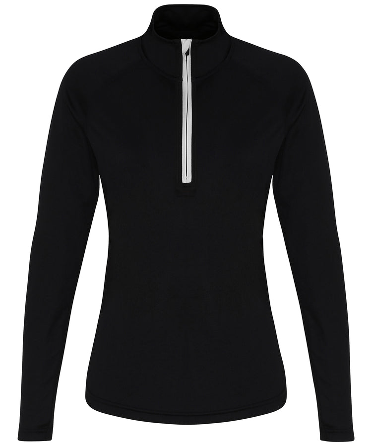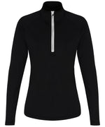 TriDri® Full-Zip Performance Langarm-T-Shirt für Damen | Schwarz/Weiß