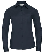 Camisa de popeln de polialgodn de manga larga fcil de cuidar para mujer | Azul Marino Francs