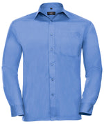 Camisa de popeln de polialgodn de manga larga fcil de cuidar | Azul Corporativo
