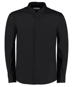 Camisa de cuello mao de manga larga (ajuste entallado) | Negro - Carbn