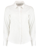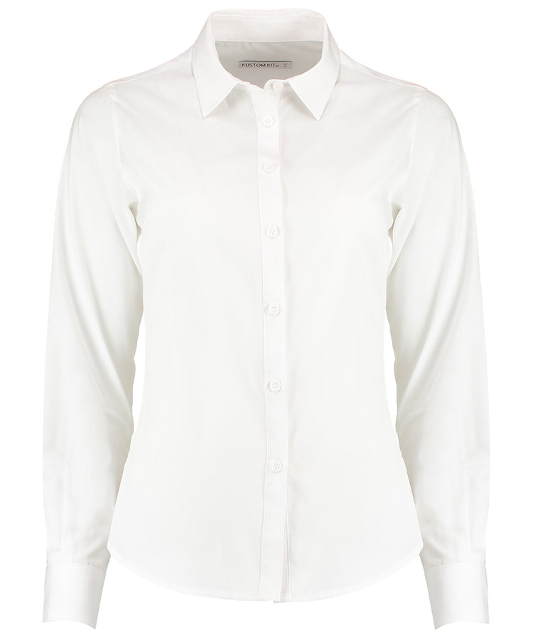 Camisa de popelina para mujer de manga larga. Cuello alto suave fusionado (sin entretelas). Tapeta de 7 botones con botones del mismo colour. Dobladillo redondeado.