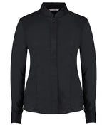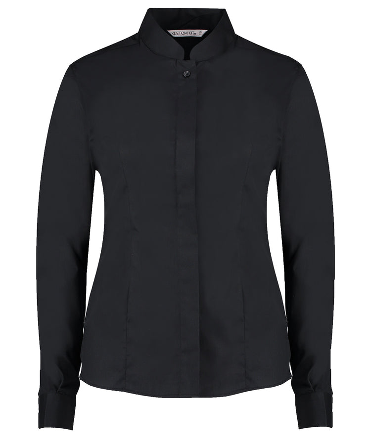 Camisa de mujer cuello mao manga larga (ajuste entallado) | Negro - Carbn