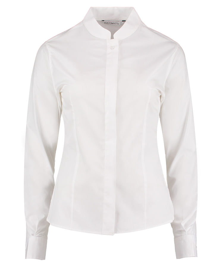 Camisa de mujer con cuello mao de manga larga (ajuste entallado)La camisa de mujer de manga larga con cuello mao de nuestra colección teeuno es perfecta para tu negocio. Con un cuello mao suave y fácil de planchar, esta prenda es ideal para una amplia gama de empresas. Su pliegue oculto y dobladillo redondeado le dan un toque elegante y profesional. Además, esta camisa cuenta con costuras dobles en los laterales y las mangas, así como dos pinzas en la parte delantera y trasera para un ajuste perfecto.