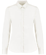 Camisa Oxford elástica de mujer de manga larga (ajuste entallado)Una camisa Oxford contemporánea de ajuste entallado con un toque elástico para mayor comodidad y ajuste. Con cuello alto fusionado, dos pinzas en la espalda, dos pinzas en el busto al frente, dobladillo redondeado, canesú en la espalda, puño ajustable con tapeta de botones y botón de repuesto. Etiqueta tejida en el cuello de Kustom Kit®. Certificado SEDEX.