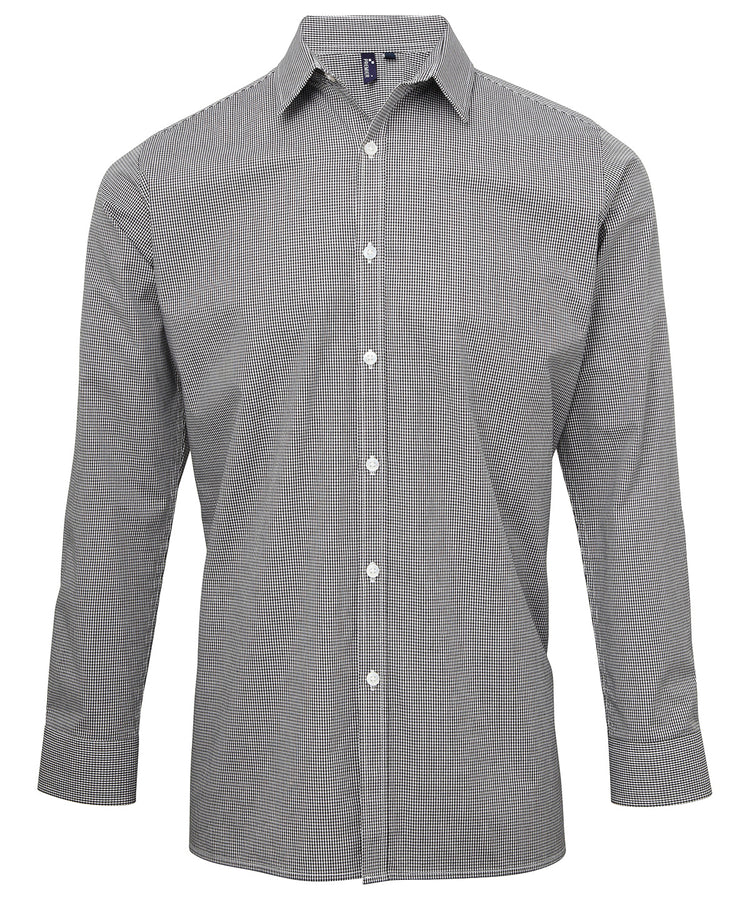Camisa de algodn de manga larga Microcheck (Gingham) | Negro/Blanco