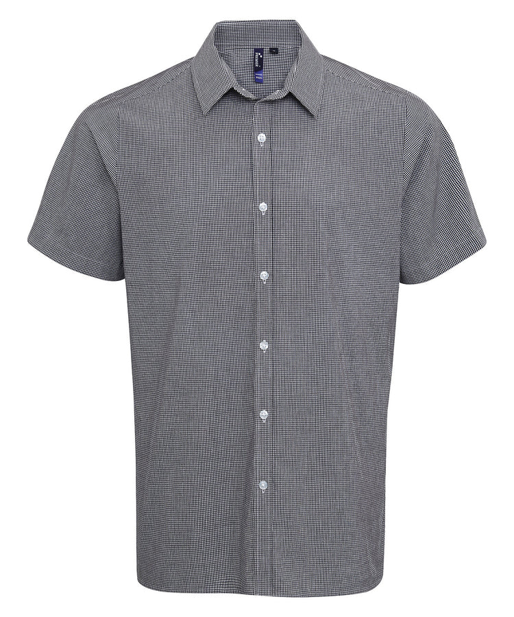 Camisa de algodn de manga corta con estampado de Microcheck (Gingham) | Negro/Blanco