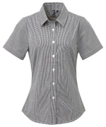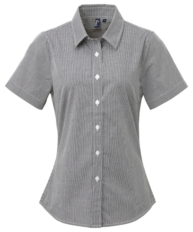Camisa de algodn de manga corta para mujer con microcuadros (gingham) | Negro/Blanco