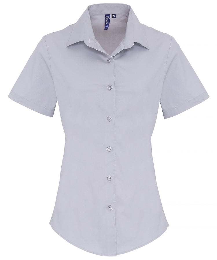 Blusa de manga corta de algodn popeln elstico para mujer | Plata