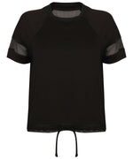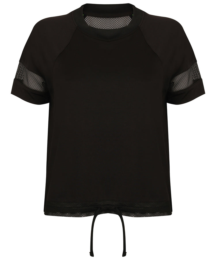 • Camiseta extragrande, paneles de malla en la espalda y mangas, dobladillo ajustable con cordón y panel, tejido ligero de tacto suave, etiqueta removible.