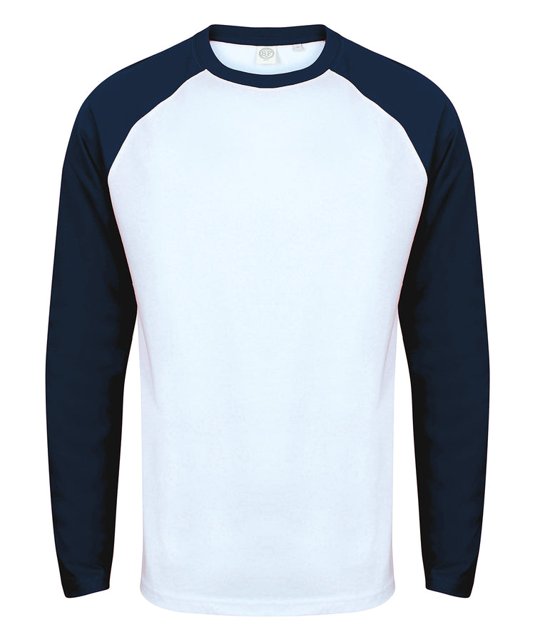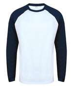 Camiseta de bisbol de manga larga | Blanco/Azul Marino Oxford