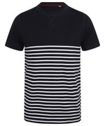 Con un diseño exclusivo que combina a la perfección estilo y comodidad, te presentamos esta camiseta de manga corta con estilo Breton de la marca 'teeuno'. Esta camiseta de peso pesado cuenta con un corte regular sin etiquetas que garantiza una comodidad excepcional. El cuello, de corte redondo, está rematado con un ribete elástico que se ajusta a la perfección, mientras que el detalle de costura 'V' en el cuello añade un toque de distinción.