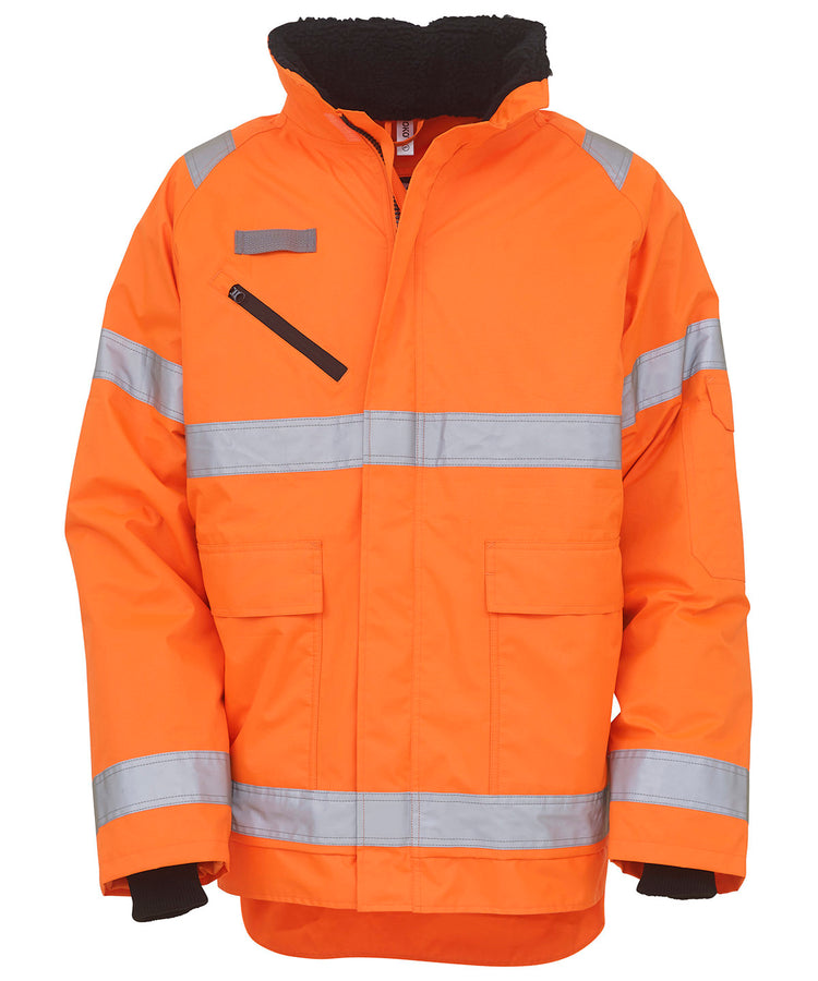 La chaqueta Hi-vis Fontaine cumple con la normativa EN ISO20471 Clase 3 y EN342:2004, proporcionando protección contra el frío, y el modelo en color naranja cumple con la normativa RIS-3279-TOM para la industria ferroviaria. Esta chaqueta, con su calidad transpirable, su resistencia al viento y al agua, así como sus numerosas características y beneficios, como la parte trasera de la cola ajustable, el bolsillo en el pecho con cremallera impermeable y el portatarjetas de identificación, es ideal para ejecutivos, gerentes, líderes de equipo, etc.