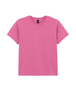 Camiseta de algodón pesado para jóvenes¡La vida de alta energía de los niños puede ser dura con su ropa, pero esta camiseta de algodón pesado de Gildan® es igual al desafío! El suave algodón jersey se siente reconfortante en la delicada piel de los jóvenes, pero con un resistente peso de tela de 185 g/m², puede manejar fácilmente las emociones, derrames y lavados frecuentes de la infancia. El cuello sin costuras de doble aguja de 3/4", el cuello y los hombros entapados, la etiqueta desprendible, las mangas de doble aguja y el dobladillo inferior, y el cuerpo girado en un cuarto para eliminar la arruga central hacen de esta camiseta una opción duradera y cómoda para los niños activos. Disponible para envío el mismo día, esta camiseta también se puede suministrar en 7 días si se personaliza con diseños y logotipos escolares o de equipo utilizando nuestros procesos líderes de impresión y/o bordado. ¡Asegúrate de que tus pequeños estén listos para la acción con esta resistente y suave camiseta de algodón pesado.