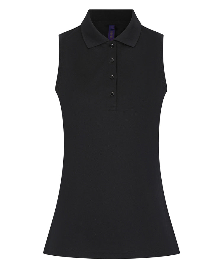 • Camiseta polo sin mangas para mujer Coolplus®, fabricada en el tejido micro-piqué Coolplus® más vendido.