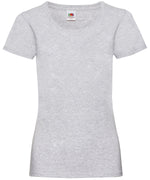 Camiseta de mujer Valueweight TLas costuras laterales en forma de T ofrecen un ajuste femenino. Cuello redondo de algodón/Lycra® con cinta en el cuello. Calibre de punto fino para una mejor impresión. También disponible en versión infantil.