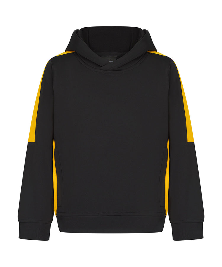 Uno de los aspectos más destacados de esta sudadera es su bolsillo con cremallera en la costura lateral del panel frontal. Este práctico detalle proporciona un almacenamiento conveniente para pequeños objetos esenciales, asegurando que las pertenencias de los niños estén seguras mientras están en movimiento. Además, la sudadera está disponible en colores sólidos y contrastantes, y viene con una etiqueta extraíble.