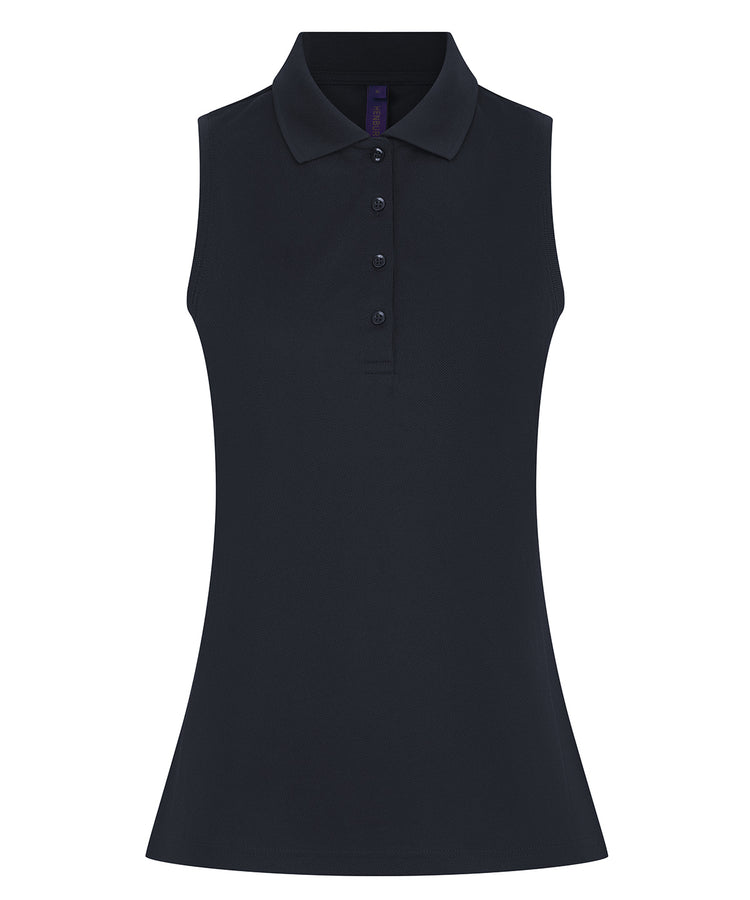 • Camiseta polo sin mangas para mujer Coolplus®, fabricada en el tejido micro-piqué Coolplus® más vendido.