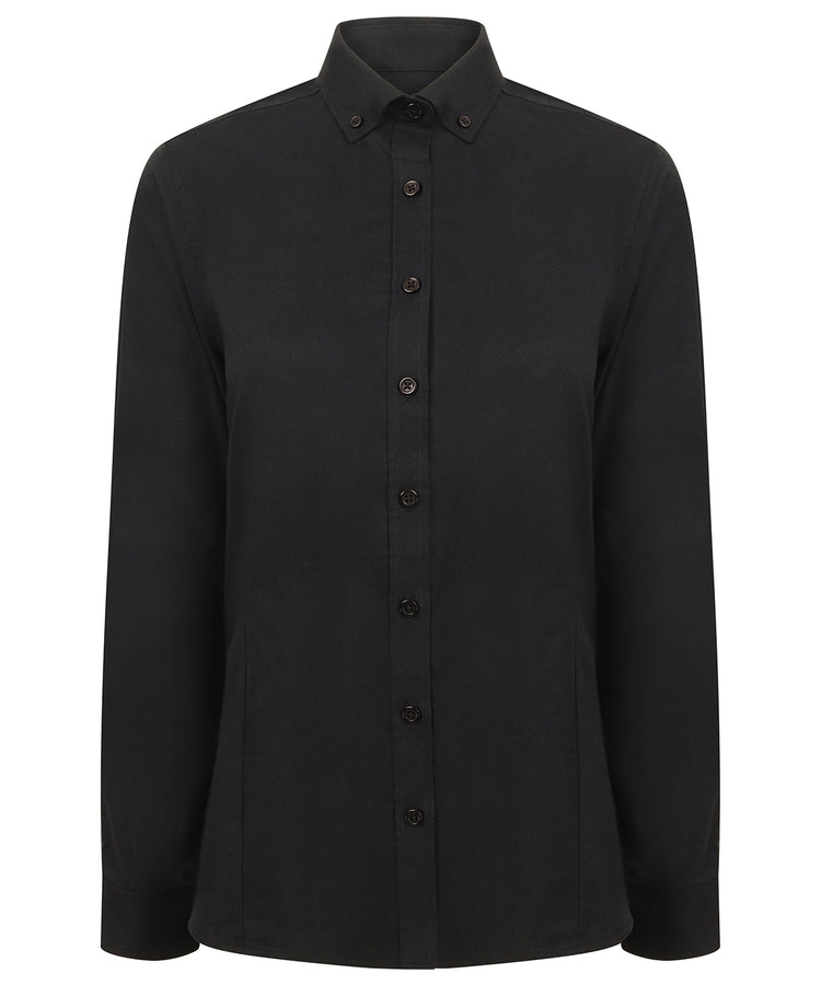 Camisa Oxford de manga larga moderna para mujer | Negro