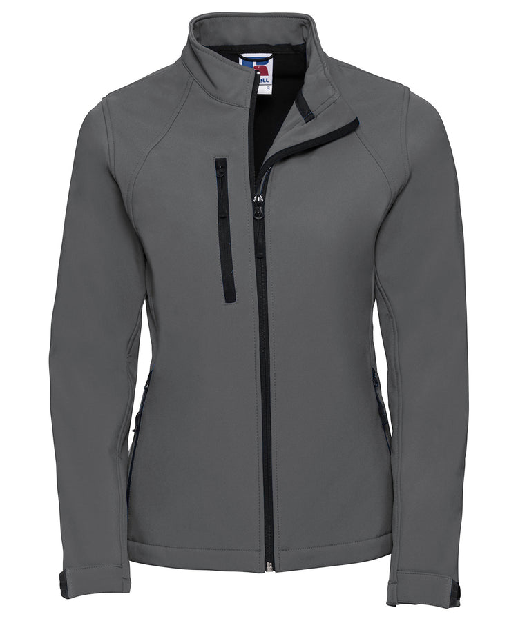 Introducing our women's softshell jacket, crafted from 3 layers of softshell fabric with a breathable membrane and bonded microfleece lining. With a water resistance of up to 5000mm, this jacket is designed to keep you dry and comfortable in any weather condition. The side pockets and chest pocket with inner lining provide convenient storage, while the reversed zip and cord pulls add a touch of style.