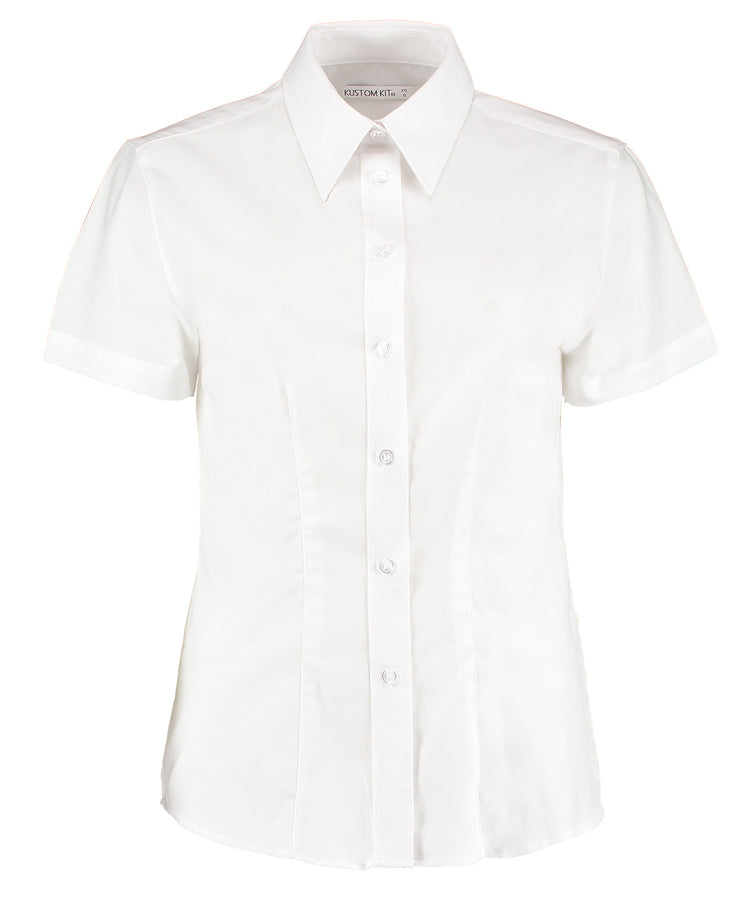 Blusa Oxford de manga corta para mujer en el entorno laboral (ajuste entallado) | Blanco