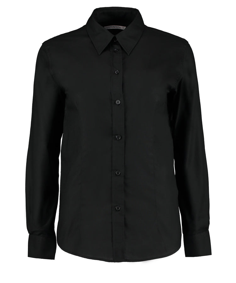 Blusa Oxford de mujer para el trabajo de manga larga (ajuste entallado) | Negro - Carbn