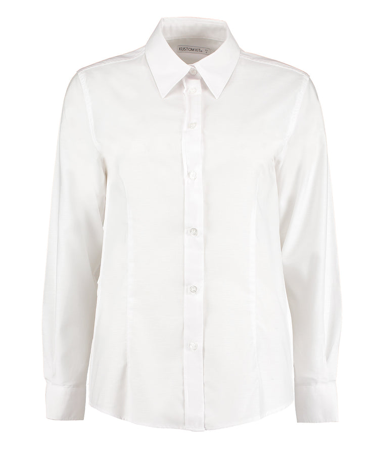 Blusa Oxford de mujer para el trabajo de manga larga (ajuste entallado) | Marfil