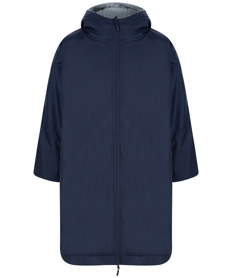 Esta bata, ideal para natación en aguas abiertas o para llevar en las líneas laterales del equipo, cuenta con bolsillos con cierre y forro de vellón para mantener las manos calientes. Además, incluye múltiples bolsillos internos con forro resistente al agua para mantener seguras todas las pertenencias. Como toque final, hemos añadido un gran cierre de cremallera para bordados que permite decorar directamente la bata.