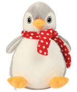 El adorable pingüino Zippie es perfecto para abrazar en los días fríos de invierno. Confeccionado en suave peluche gris y blanco, este pingüino tiene un llamativo pañuelo de punto a rayas que le da un toque de colour. Sus ojos cosidos, pies y pico en contraste lo hacen aún más encantador. Además, cuenta con un panel blanco en la barriga ideal para personalizar con bordados o estampados.